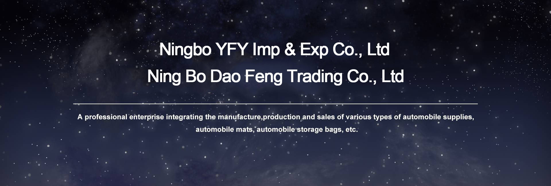 Ning Bo Dao Feng Tranding Co., Ltd. It is branches of NINGBO YFY IMP & EXP CO.,LTD, which is focus on online business, especially for Amazon USA, the products range from car organizer to car accessories. Looking forward to your visiting and make a great online business with you.